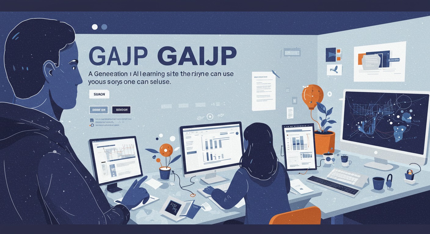 Please create a banner for selling products. It will advertise a website with the following content. The title should be "GAIJP" and the catchphrase should be "A generative AI learning site that anyone can use."